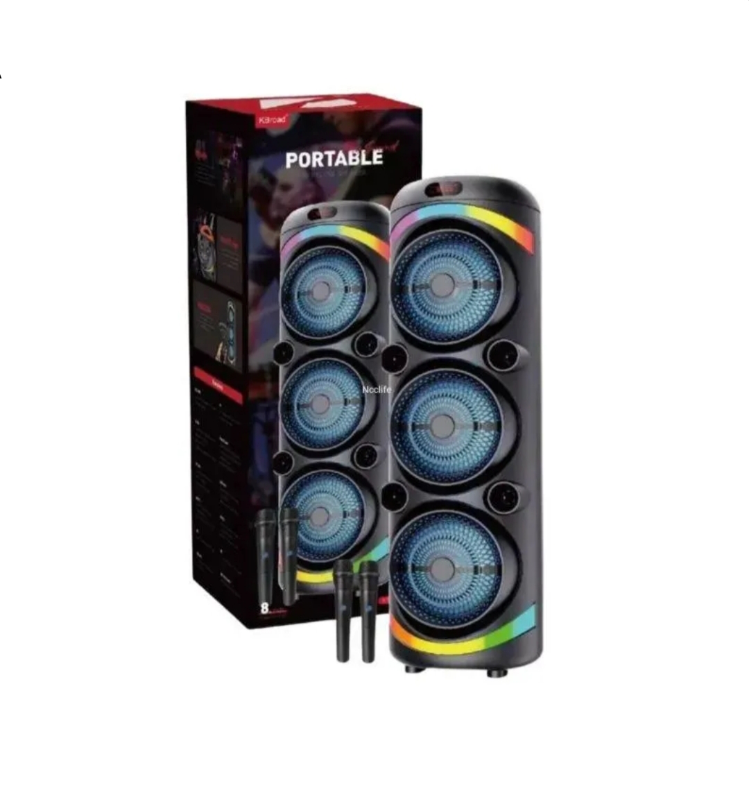 içerisindeki 8'' lik 3 adet hoparlör sayesinde muhteşem ses deneyimi sunar. kutu içiresinden çıkan 2 adet kablosuz mikrofon ile üst düzey kareoke deneyimi yaşamanız mümkündür.